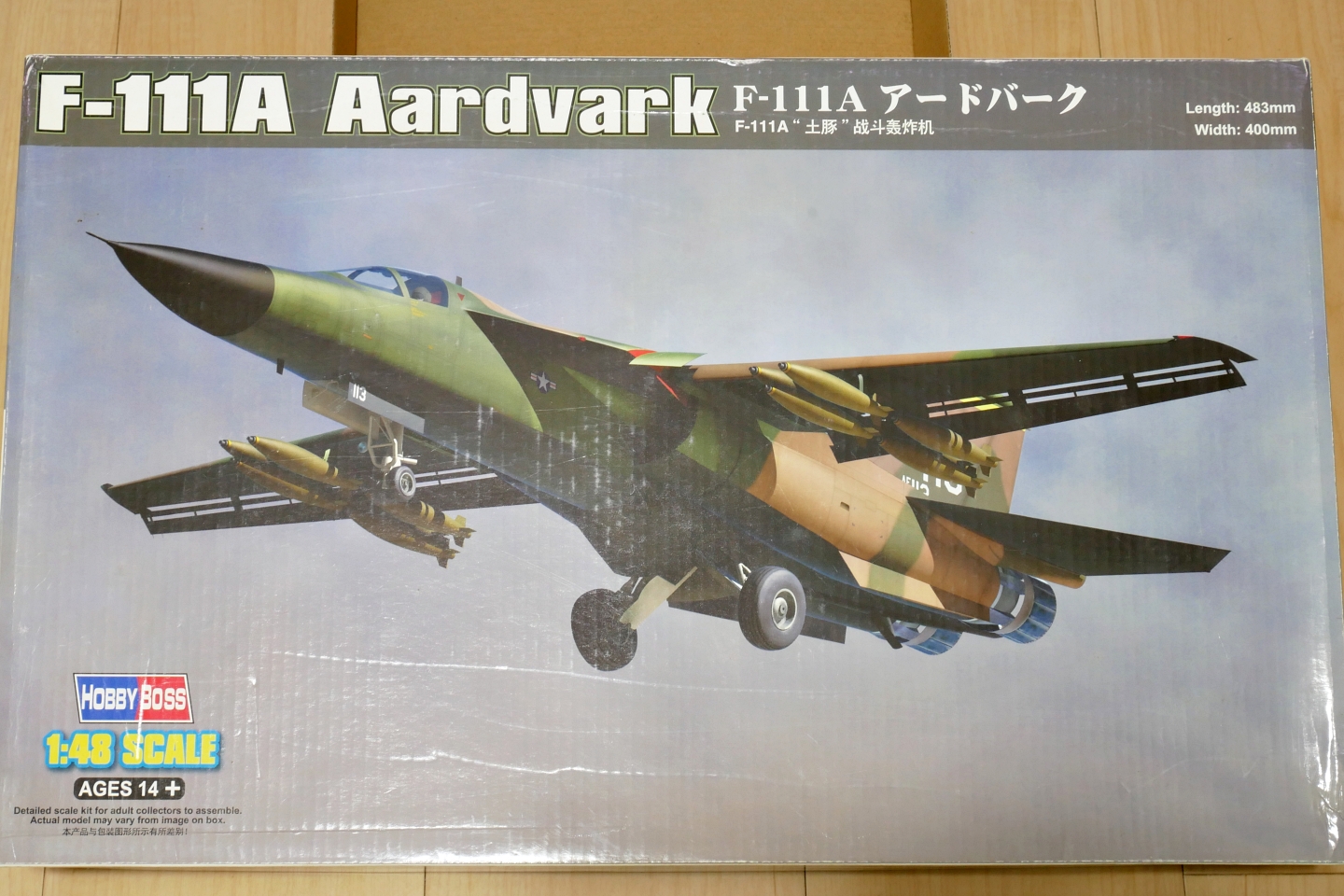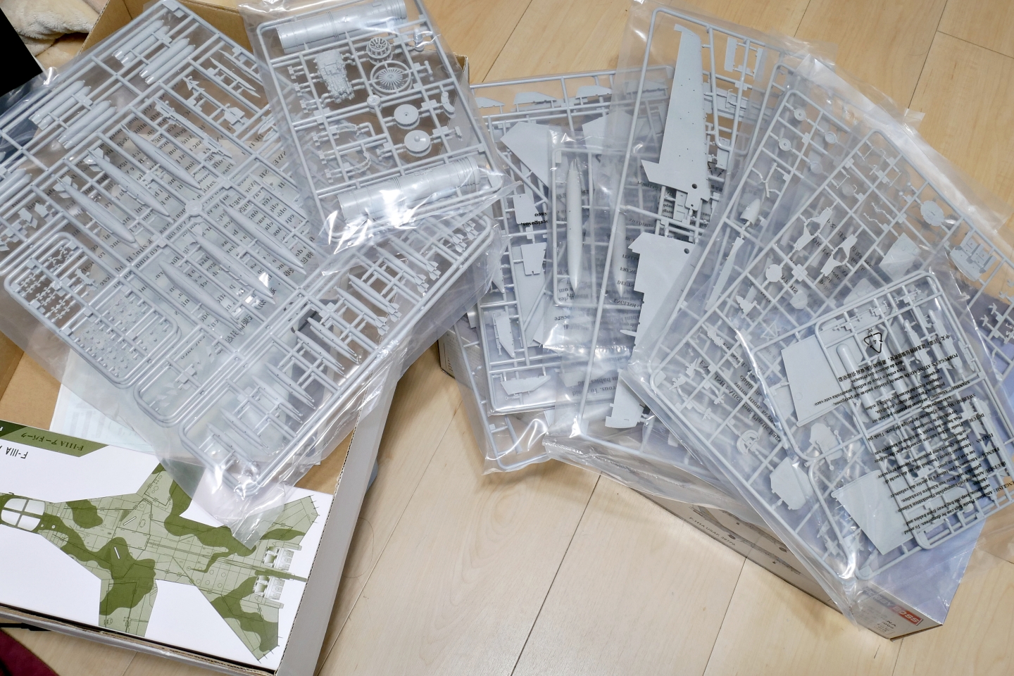 今回はけっこう大きな箱の航空機のプラモデル、F-111Aを組んでみようと思います。だいぶ前に勢いで購入してみたものの、でかすぎてなんか取り廻し難そうだったのでずっと積んでいました。他にも大きな箱のキットがまだたくさんあるにはあるのですが今回はこの機体、ベトナム戦争っぽいカラーリングが目を引きました。ソビエト軍のミサイル車両が塗装やデカールの乾燥待ちなのでちょっと手を付けてしまいました。ちょっとと言うには大掛かりな製作になりそうですが・・・。