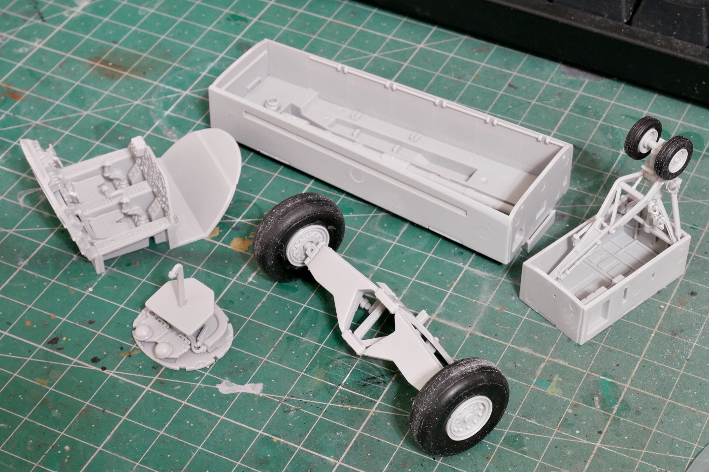 ランディングギアの格納庫はわかるんですが、大きな箱上のもの、これって爆弾槽なのかな。その割には組立説明書にはこの糟の中に爆弾を配置するような指示は無いんですよね。内部機構も良く解らないので、蓋をした状態て組み立てるかと思います。F-111のこの部分の写真て見つからなくて分かり難いです。