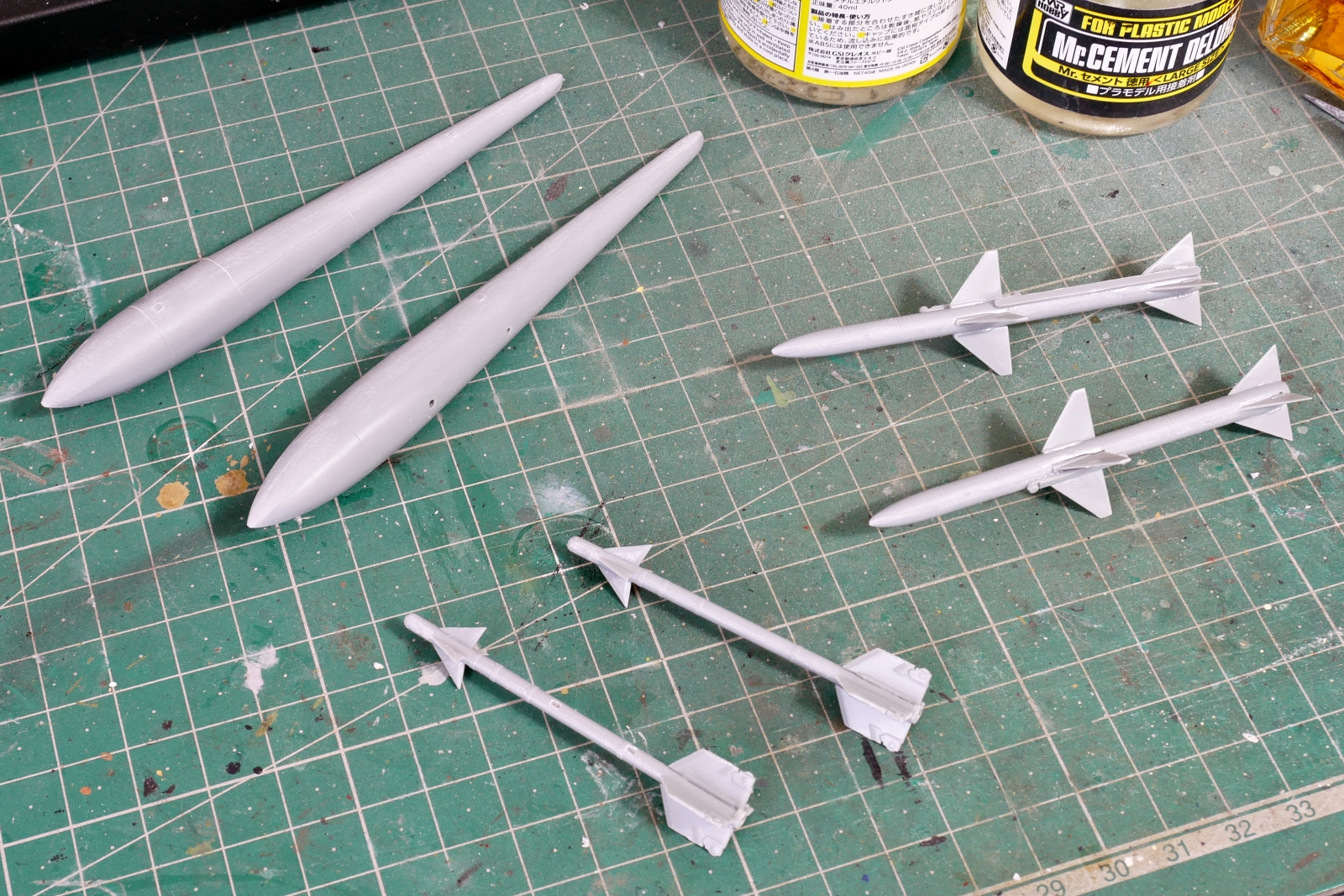 今回の製作で取り付けるのは、スパローミサイル2本とサイドワインダー2本、それと増槽です。こちらも羽根が薄く仕上がっていてけっこう良い出来のキットです。
