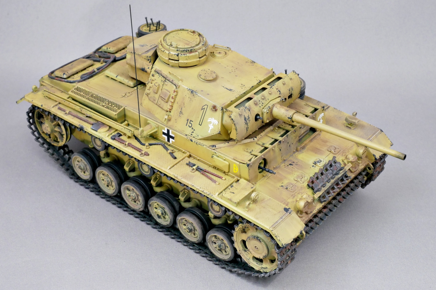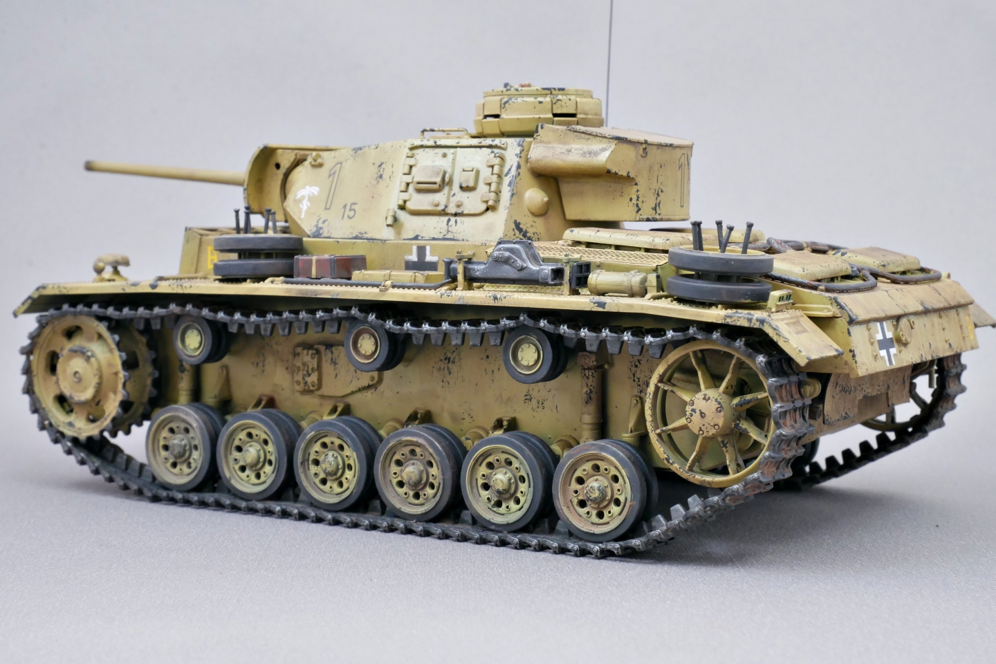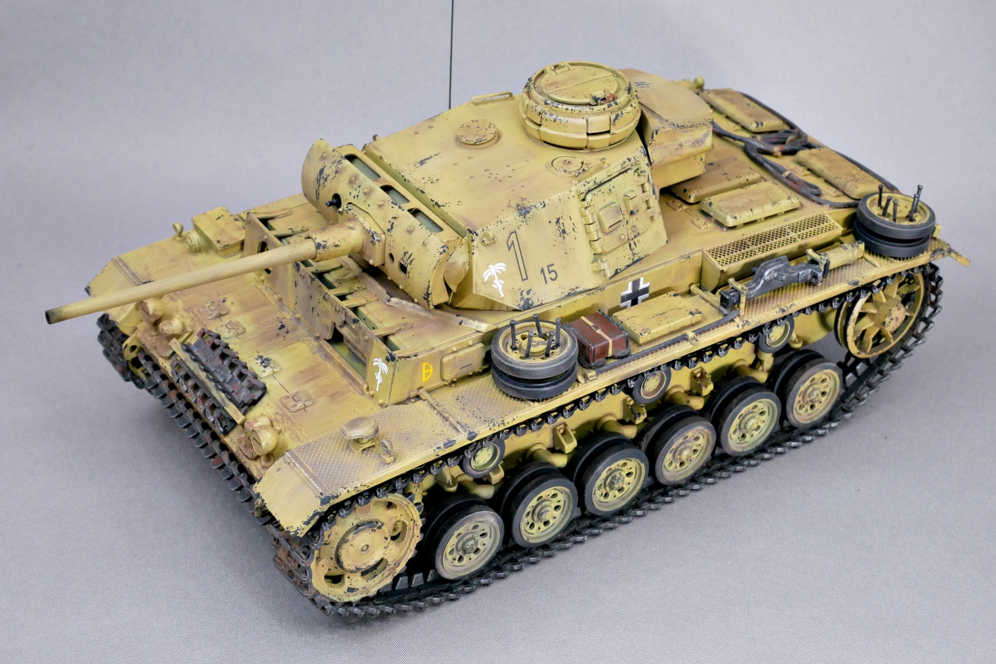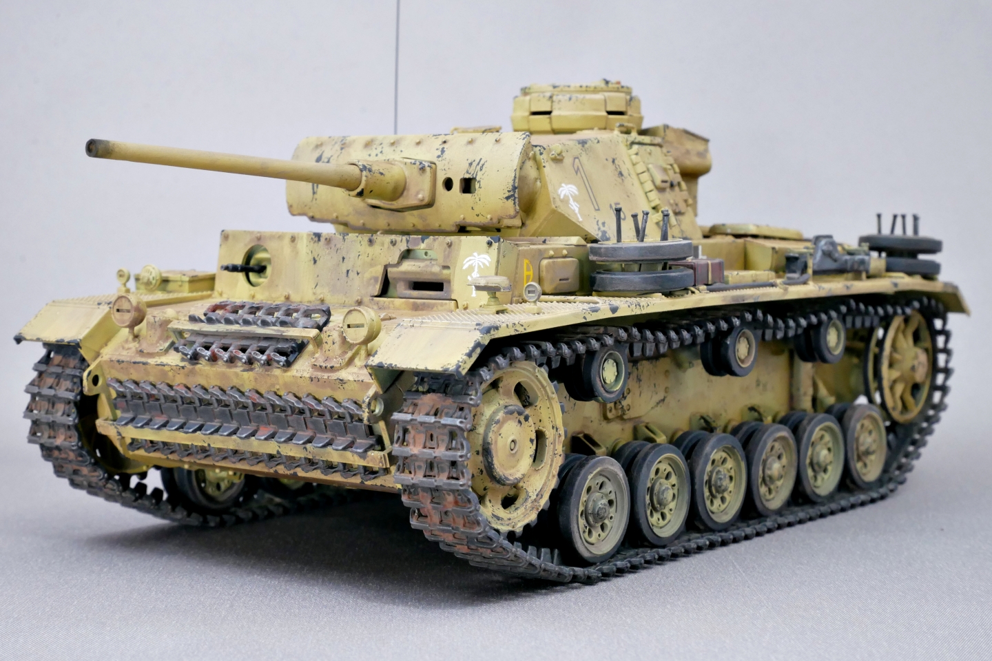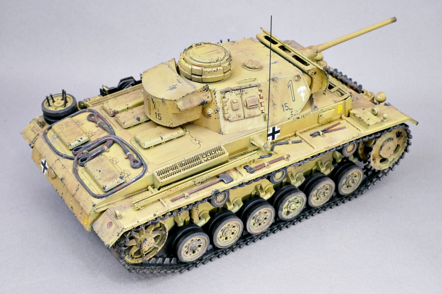 とりあえずはタミヤのIII号戦車L型がようやく完成しました。今回はドイツアフリカ軍団の戦車としました。上記でも触れましたが第21装甲師団の部隊マークを貼り付けて、無理やりロンメル元帥直轄部隊の車両にしてみました。