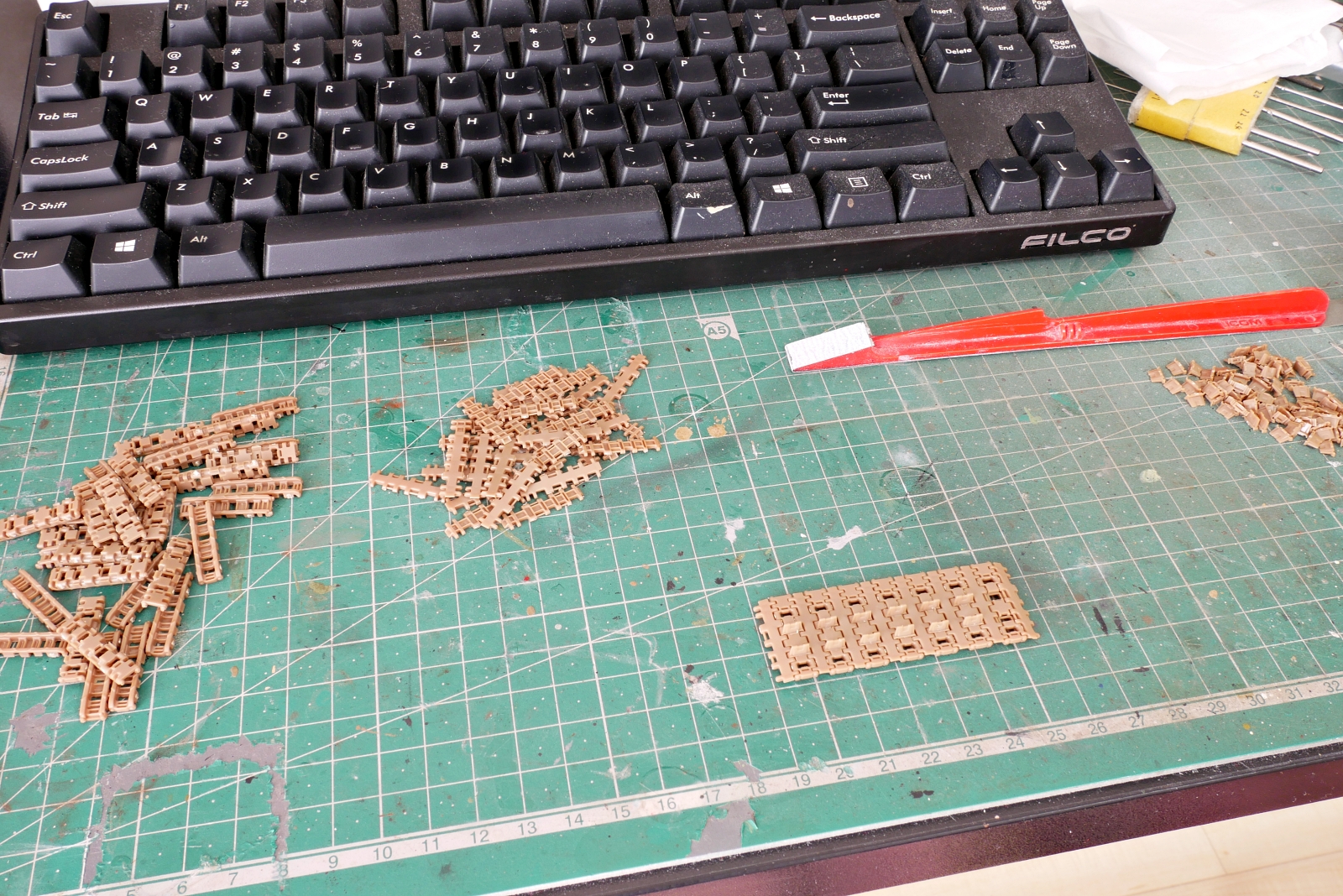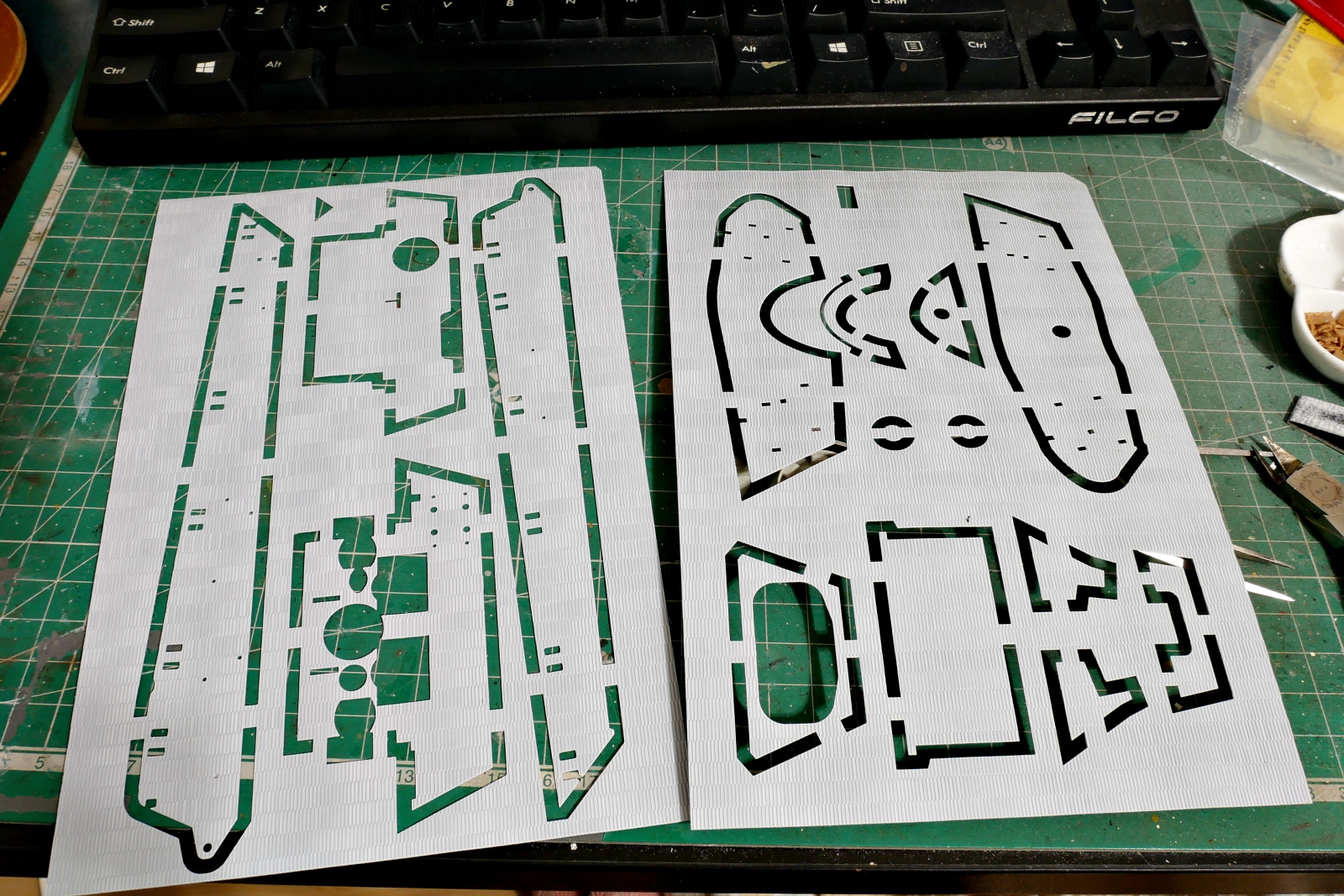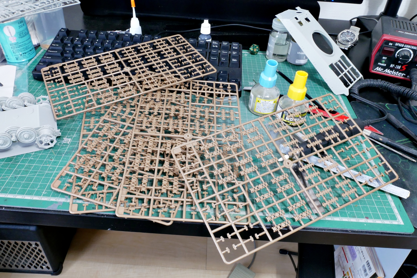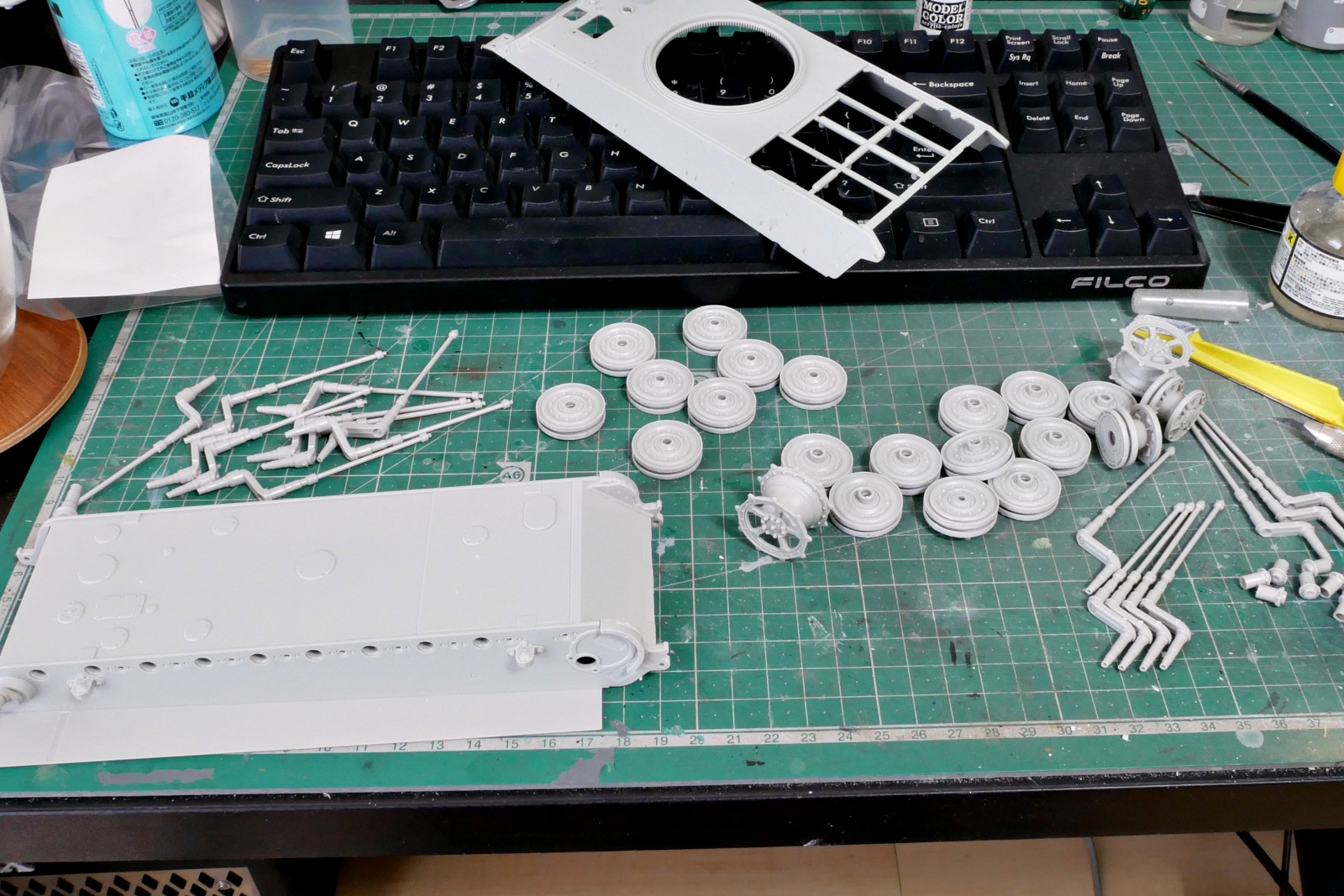 一つずつのパーツが大きいので作り甲斐があります。とりあえずシャーシにくっつけるものは最初にぜんぶ切り出しておきました。