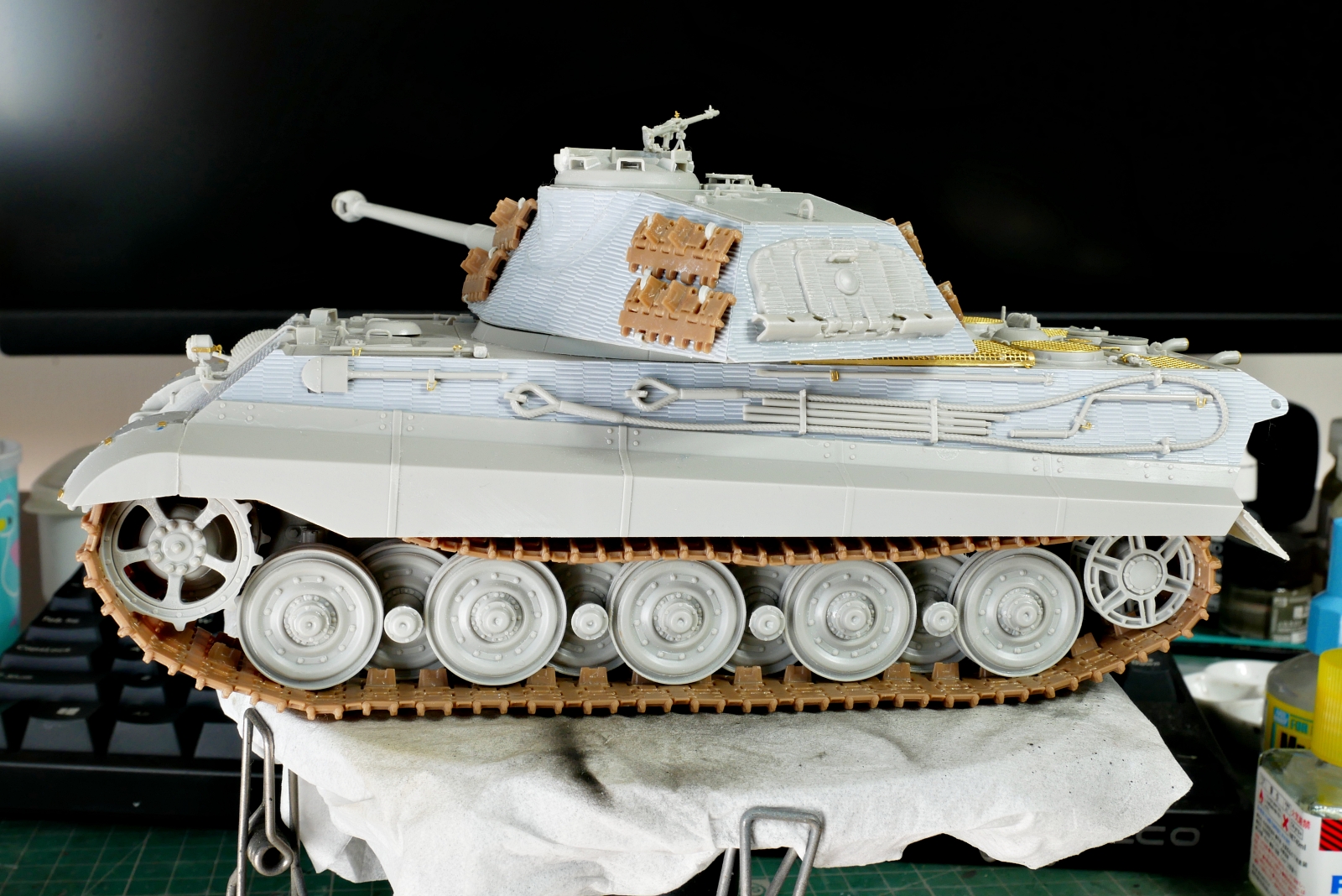 やっぱりティーガーやパンター系列は後部エンジン部分のメッシュパーツがあったほうが見た目が良いですね。別売りでそろえるのも大変だし。細かい部品もだいたい取り付けてもう少しで組み立てが完了します。
