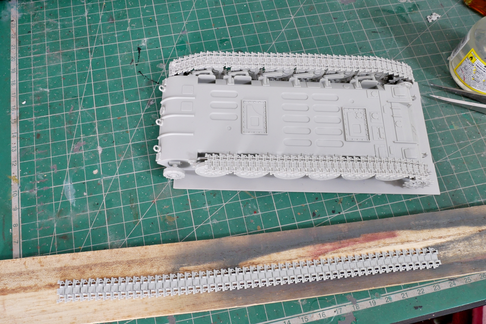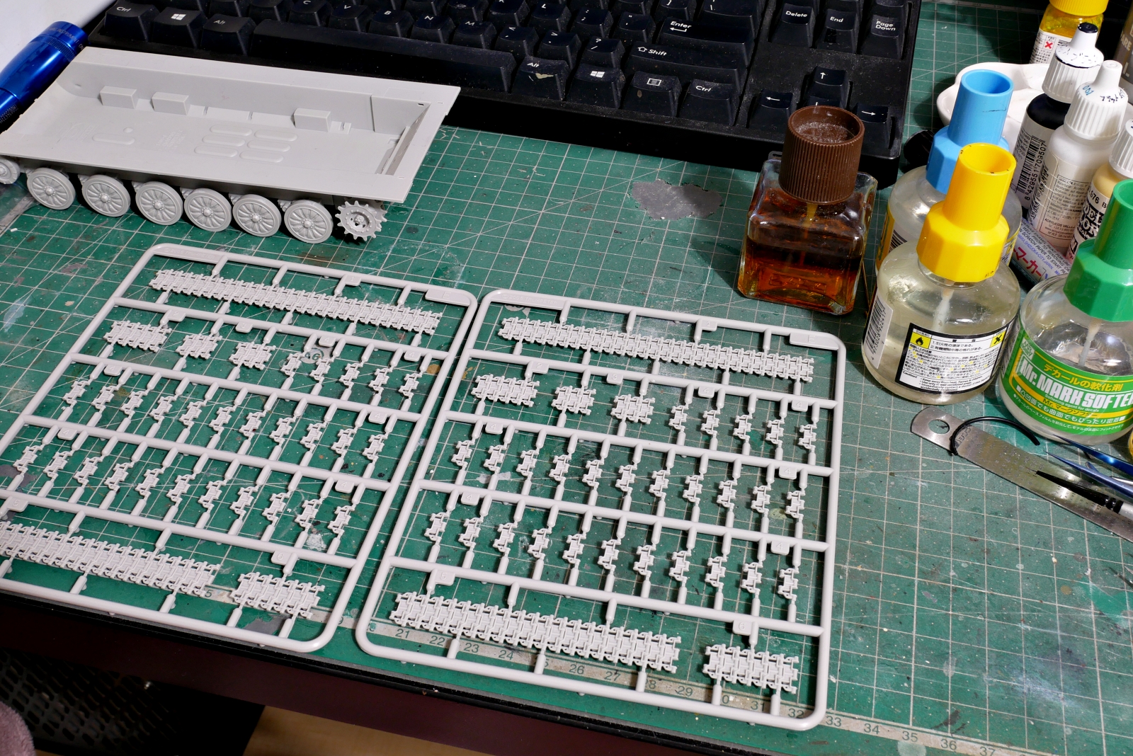 今回のゲインフルは部分連結履帯です。そんなにたくさんパーツを切り貼りする必要は無さそうですね。主力戦車より履帯が薄くて軽めに見えます。