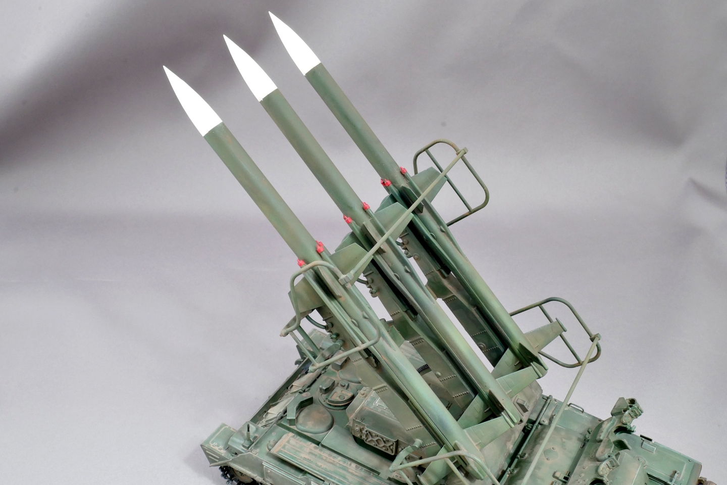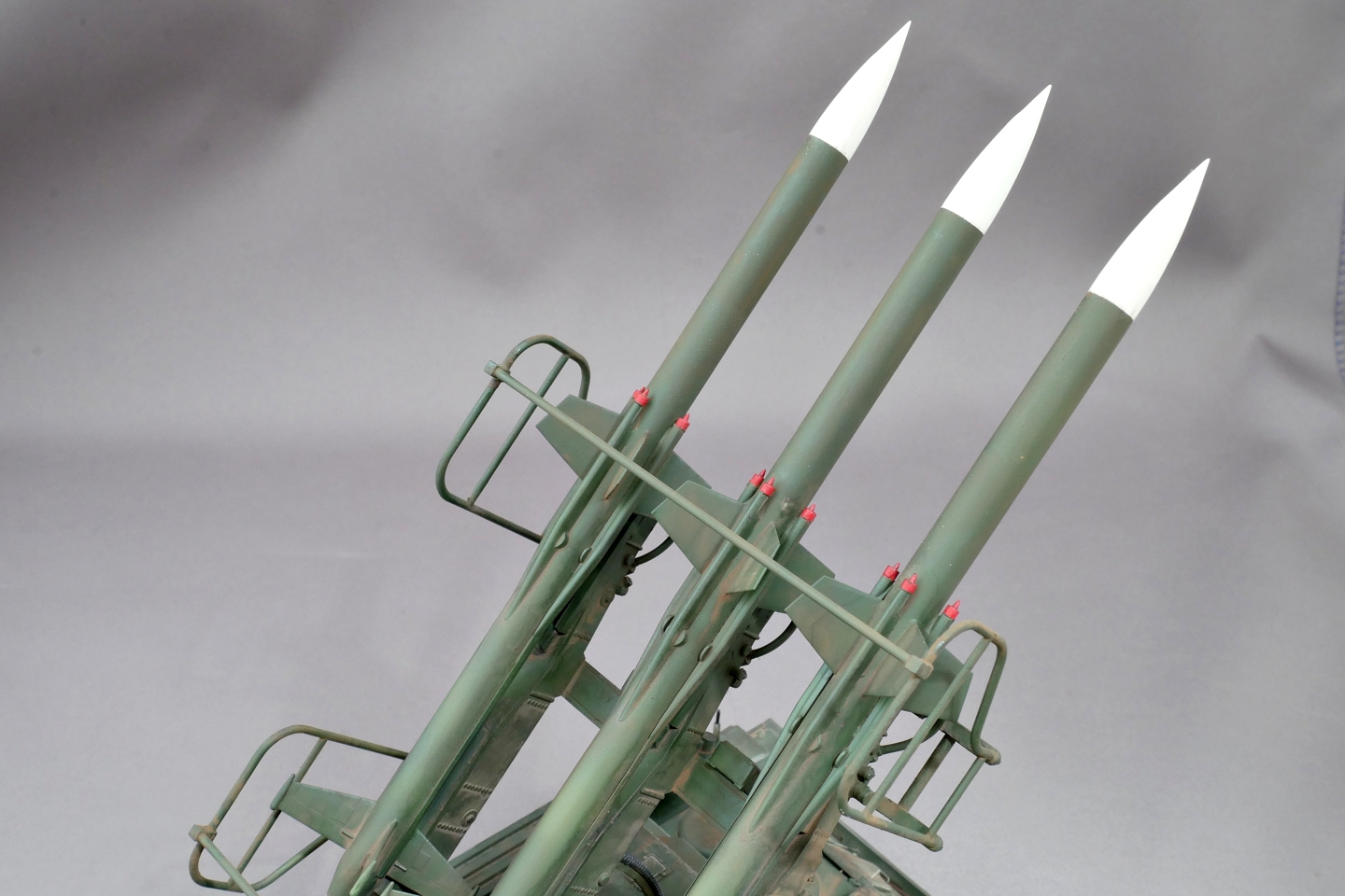 SAM-6 対空システム ゲインフルが完成しました。3発の対空ミサイルを発射体制で上向きに固定してあるので嵩張りますけど、組立自体はそれほど難しいところはありませんでした。