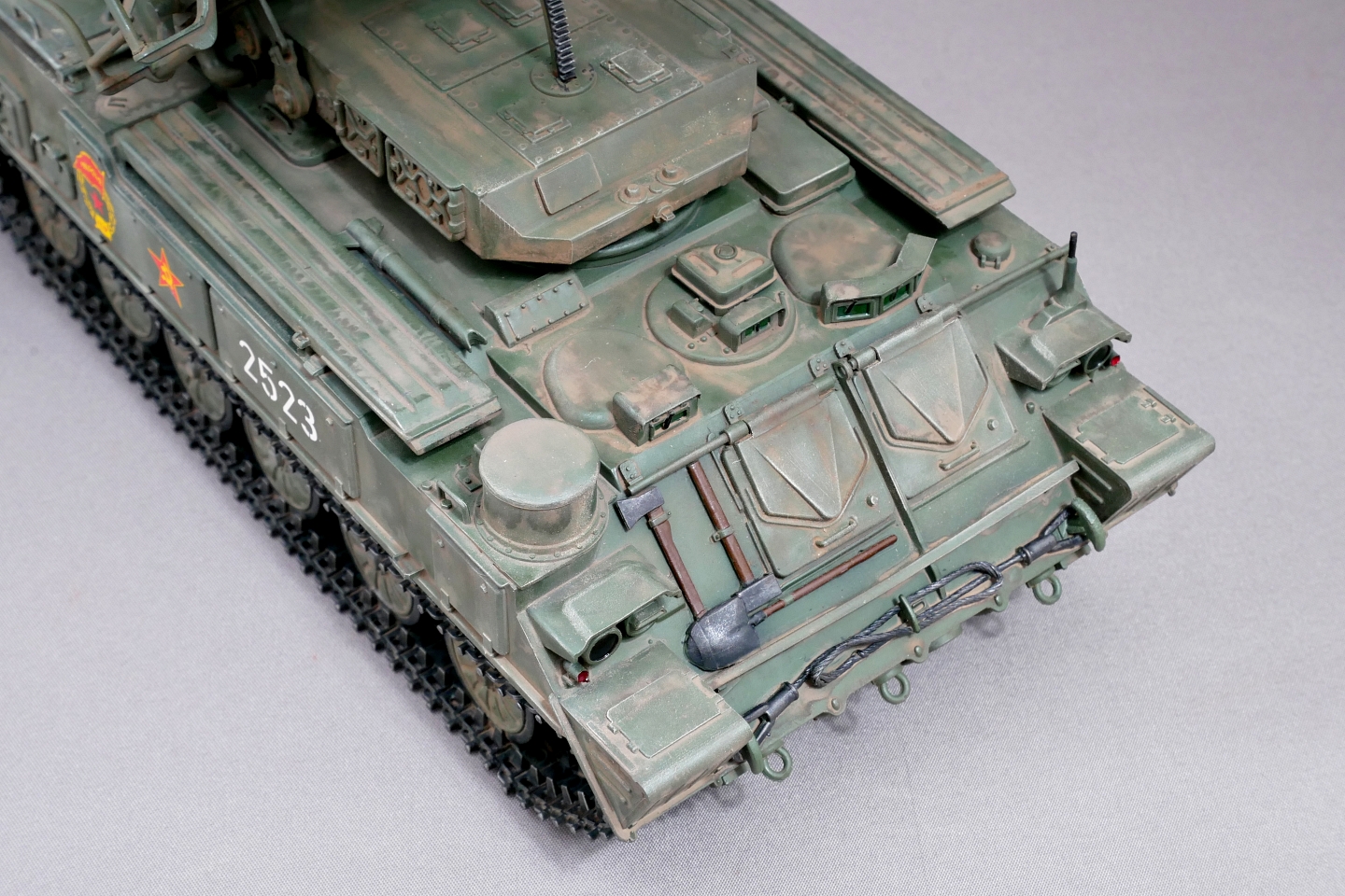 どこの国でも対空砲や対空ミサイルの車体ってこんな感じですよね。ちょっと大きくてずんぐりした感じ。ハッチは前方とミサイル回転台の後ろにあるのかな。発射するとき車内にいるのってなんか怖いんですけど・・・。